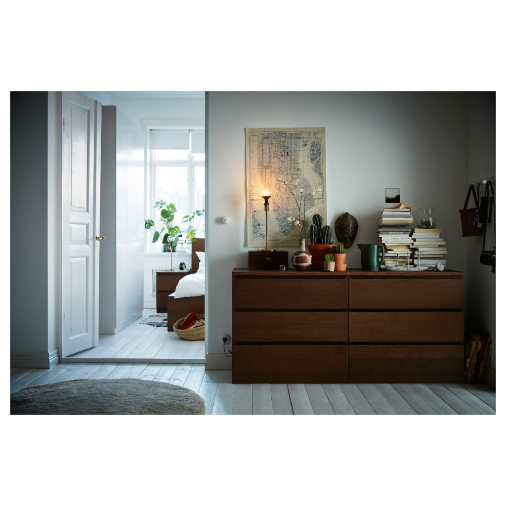 MALM Комод 6 ящиков коричневая морилка ясеневый шпон, 160х78 см
