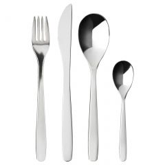 Вам не обязательно тратить целое состояние, чтобы насладиться ужином за накрытым столом. MOPSIG — прочные столовые приборы для повседневного использования по цене, позволяющей сэкономить на покупке вкусных ингредиентов. Столовые приборы изготовлены из нержавеющей стали, которая прочна и легко чистится. В набор входят: 4 вилки, 4 ножа, 4 ложки и 4 чайные ложки.