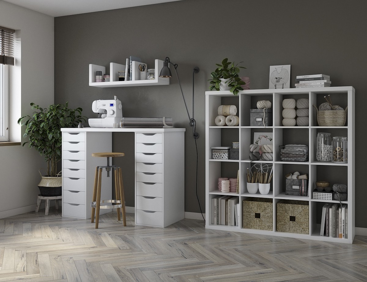 Стильный внешний вид, который легко сочетать с другими стилями, как в качестве подставки для стола, так и отдельно стоящего. Задняя часть готова, поэтому ее можно разместить посередине комнаты — все стороны одинаково красивы. Замки не позволяют ящику выдвигаться слишком далеко.