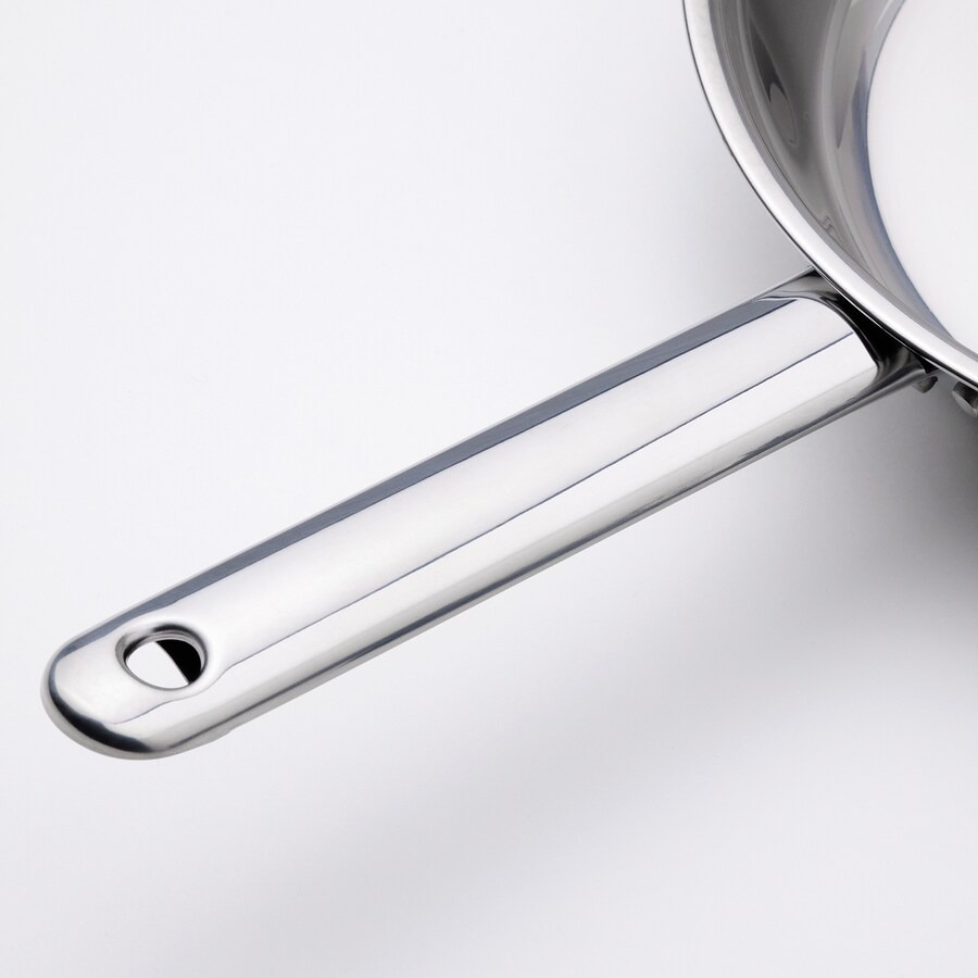 Качественная нержавеющая сталь и прочное металлизированное покрытие внутри делают сковороду очень прочной и подходящей для повседневного использования.