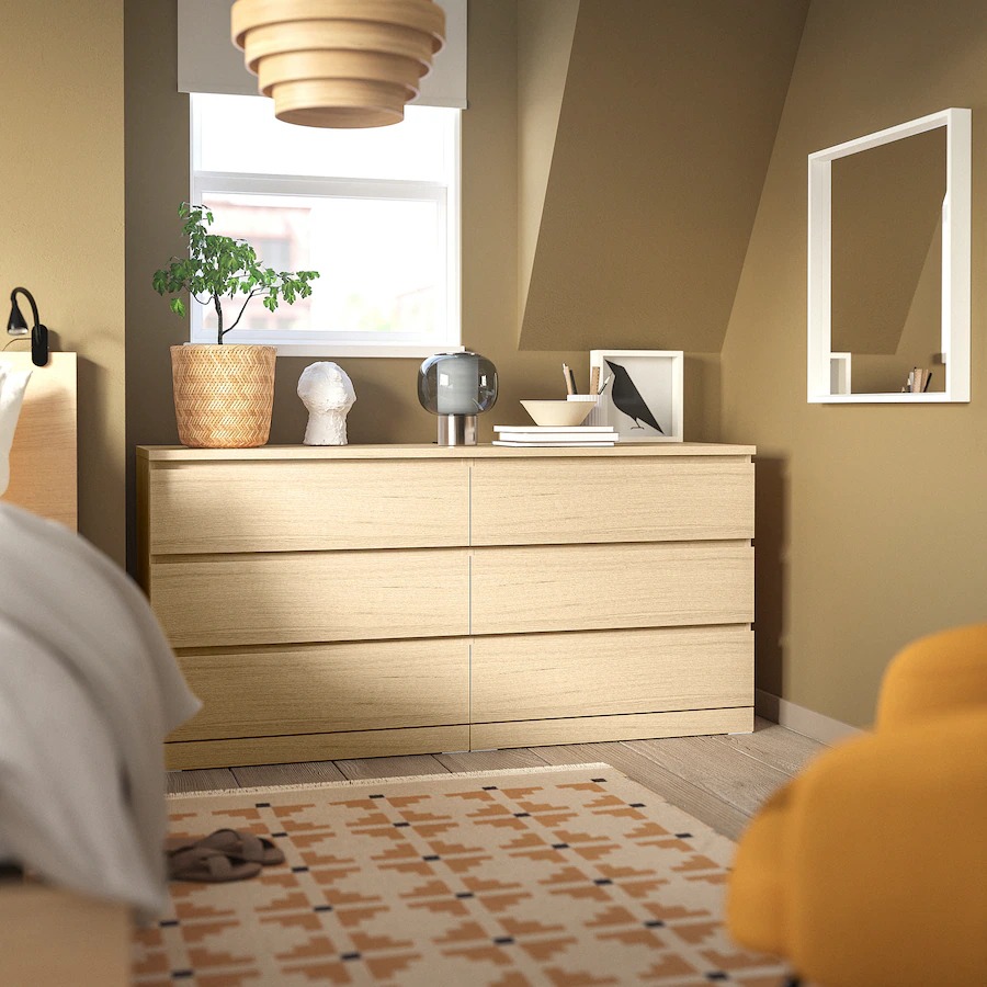 MALM Комод 6 ящиков дубовый шпон, 160х78 см