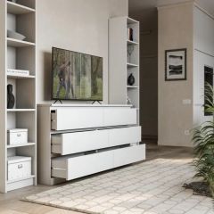 Стеллаж прекрасно дополнит любой интерьер, создаст домашний уют и позволит ежедневно наслаждаться комфортом использования. Материал: ДСП, поверхность - декорированная бумага, окраска УФ-материалами.