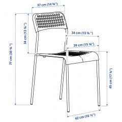 Стулья можно штабелировать, что позволяет экономить место при хранении. Данный стул протестирован и одобрен для бытового использования и соответствует требованиям к безопасности, долговечности и устойчивости, установленным стандартами EN 12520 и EN 1022. Рекомендуется использовать только в помещении. Для защиты пола и уменьшения шума, когда вы двигаете стул, рекомендуется использовать наклейки на мебельные ножки ФИКСА, продаются отдельно. Дизайнер Marcus Arvonen Каркас ножек/ Поперечная обвязка: Сталь, Эпоксидное/полиэстерное порошковое покрытие Сиденье/ Спинка: Полипропилен Вытирать чистой сухой тканью. Уход: используйте мягкий мыльный раствор. Для обеспечения максимального качества при необходимости подтягивайте шурупы. Можно разобрать на компоненты для переработки или энергетической утилизации, если это предусмотрено в вашем регионе. Мы хотим оказывать позитивное воздействие на экологию планеты. Вот почему мы планируем к 2030 году использовать для изготовления наших товаров только переработанные, возобновляемые и полученные из ответственных источников материалы. ADDE АДДЕ Стул Номер товара: 103.597.91 Ширина: 50 см Высота: 8 см Длина: 76 см Вес: 2.92 кг Упаковки: 1 Инструкции по сборке ADDE АДДЕ Стул 103.597.91 ADDE АДДЕ Стул 103.597.91 Другие документы ADDE АДДЕ Стул 103.597.91