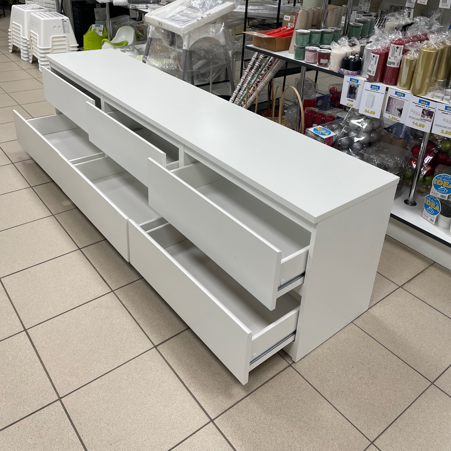 В больших ящиках этой тумбы удобно хранить пульты дистанционного управления, игровые приставки и другие ТВ-аксессуары. Провода не на виду, но всегда под рукой. Мы рекомендуем, чтобы тумба была немного шире, чем установленный на ней телевизор. Эта тумба подходит для телевизора до 85 дюймов. Вы можете выбрать телевизор большего размера, если он не тяжелее указанной максимальной нагрузки на верхнюю панель тумбы. Верхняя панель этой тумбы предназначена для телевизора весом макс. 35 кг. Эту мебель необходимо крепить к стене с помощью прилагаемого стенного крепежа. Для разных стен требуются различные крепежные приспособления. Подберите подходящие для ваших стен шурупы, дюбели, саморезы и т. п. (не прилагаются). Комбинируется с другой мебелью серии KULLEN.