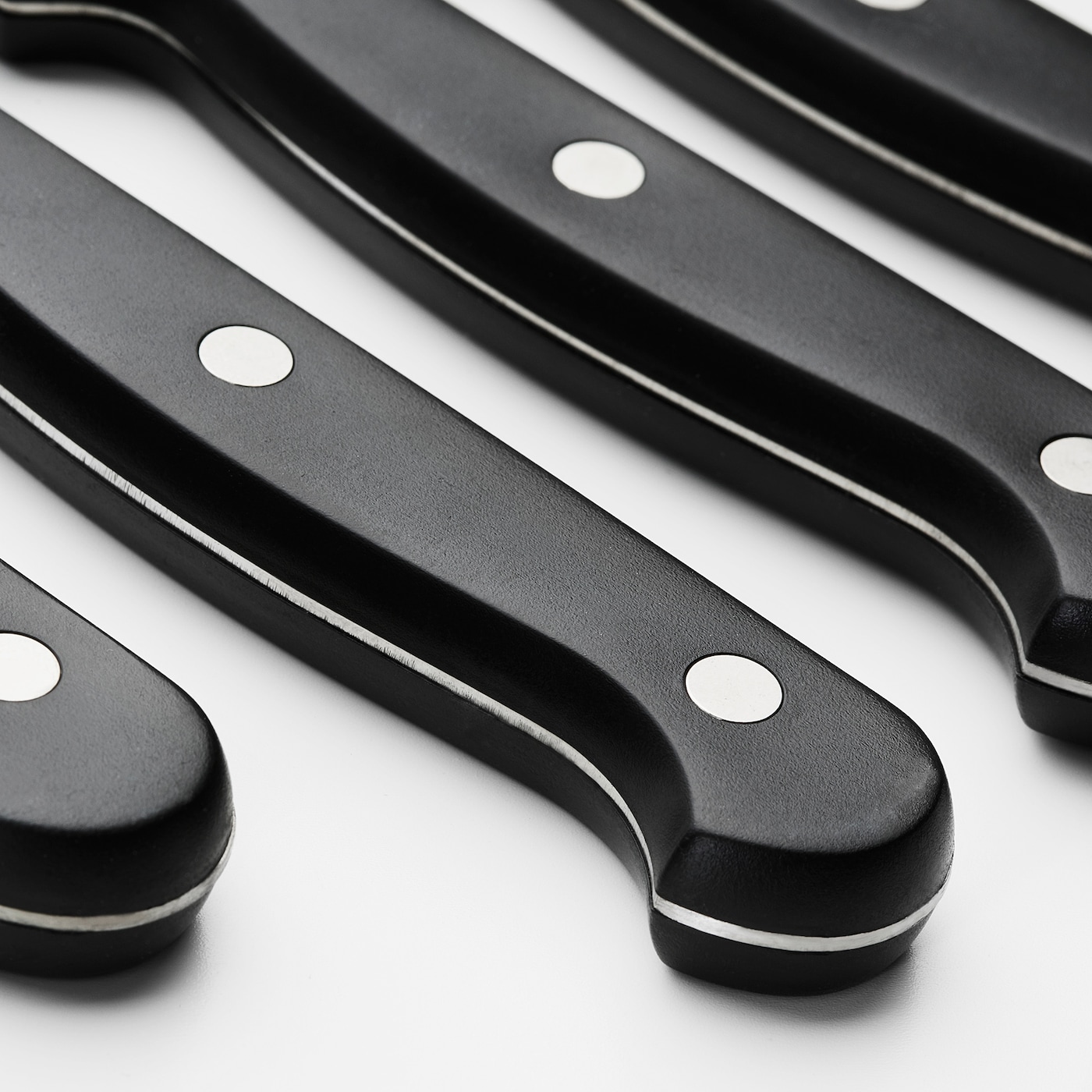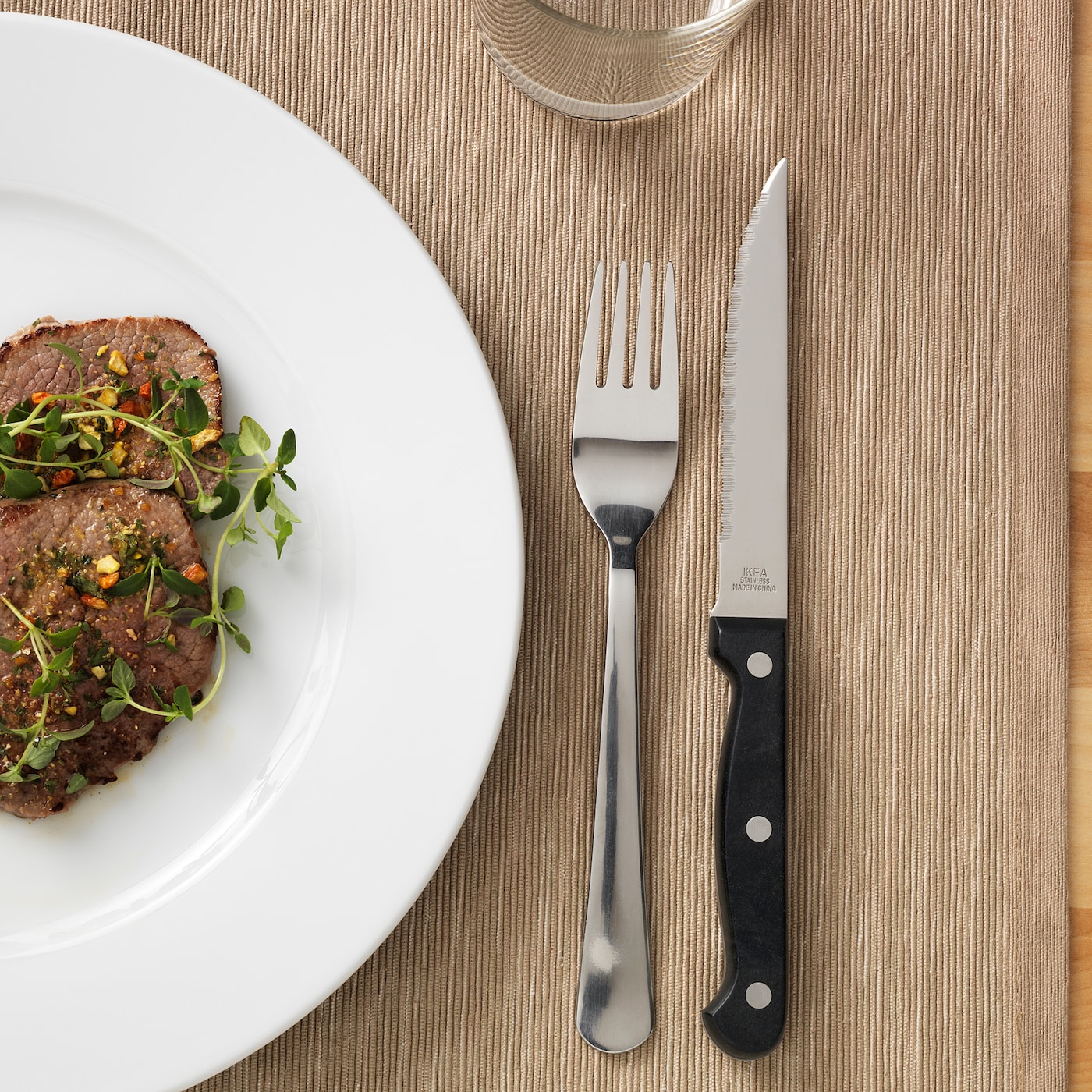 Нож с зазубренным (серрейторным) лезвием легко и плавно режет мясо. Удобно использовать в качестве столового ножа. Можно использовать для барбекю или как универсальный нож. Вымойте изделие перед первым использованием. Нержавеющая сталь, Пластмасса АБС Можно мыть в посудомоечной машине. SNITTA СНИТТА Нож Номер товара: 103.790.20 Ширина: 12 см Высота: 2 см Длина: 23 см Вес: 0.23 кг Упаковки: 1