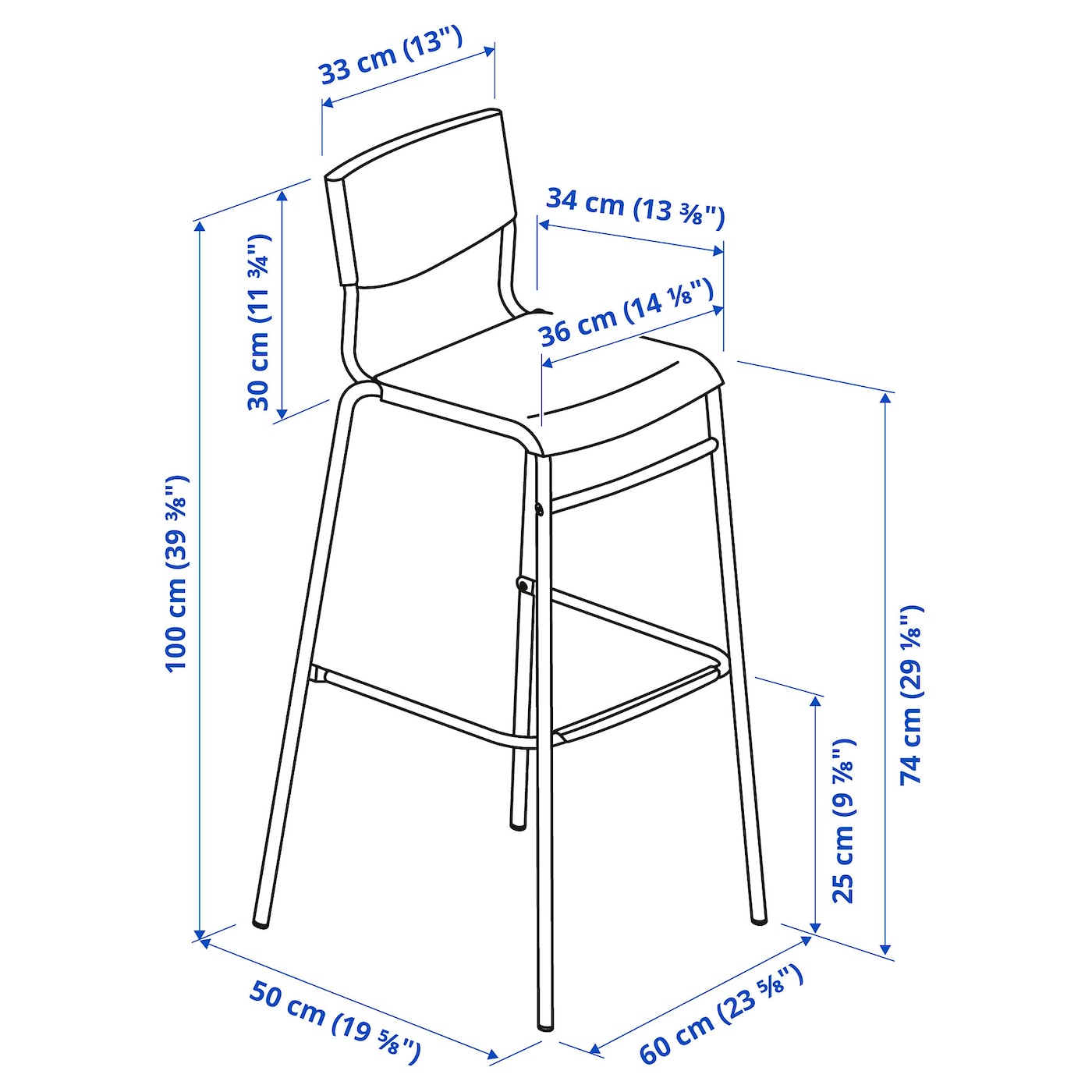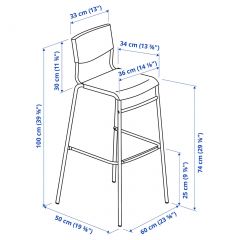 STIG СТИГ Стул барный Номер товара: 304.984.23 Ширина: 48 см Высота: 6 см Длина: 78 см Вес: 4.35 кг Упаковки: 1